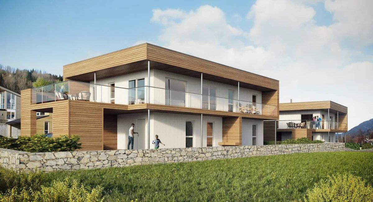 Grip 2 er en utvidet variant av Grip med utleiedel og mer rom. Dette gir huset god plass for den store familien. Vi har beholdt den modernistiske arkitekturen fra Grip med sin rasjonelle konstruksjon og nøkterne geometriske form uten overflødige elementer. Taket på carporten gir familien en stor privat og skjermet uteplass.